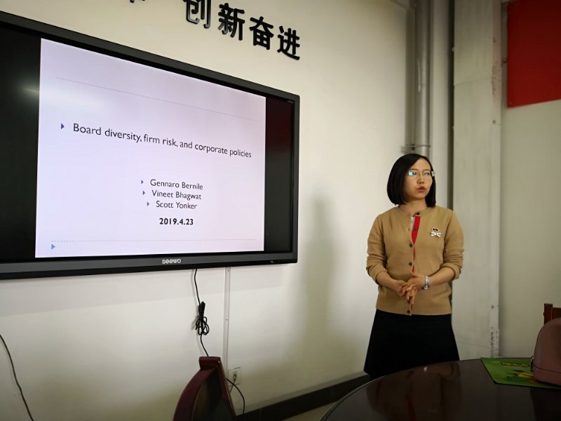 学院学术论坛由贺亚楠博士向全院师生讲解2016年发表在JFE上的一篇论文《Board diversity,firm risk and corporate policies》。文章背景是源于近年来公司董事会的多样性受到了政治和媒体的广泛关注,但此前研究大多数侧重多样性的某个方面。作者观察表明,近年来,公司董事会多样性,一方面导致决策趋于温和,但没有系统的证据表明这些影响对公司董事会的运作产生了影响;另一方面会加剧冲突并扰乱董事会决策过程,导致公司风险和波动性更高而不是更低。文章推测,更大的董事会多样性应该导致更稳定的结果。董事会多样性是否会影响公司波动性,是文章分析的核心研究问题。文章构建了董事会多元化指数,检验多元化对公司风险的影响,发现更高的多元化程度会带来更低的波动性及更好的业绩表现;但同时多元化对研发投入增加的影响也很显著。众所周知研发投入会提高企业风险,这与其他结果相矛盾。为此文章进一步检验发现多元化也会同时增加研发产出,增加研发产出会降低企业风险。此外,贺老师对文章中所采用的工具变量进行了详细介绍,增加了学院师生对工具变量使用的知识面。
