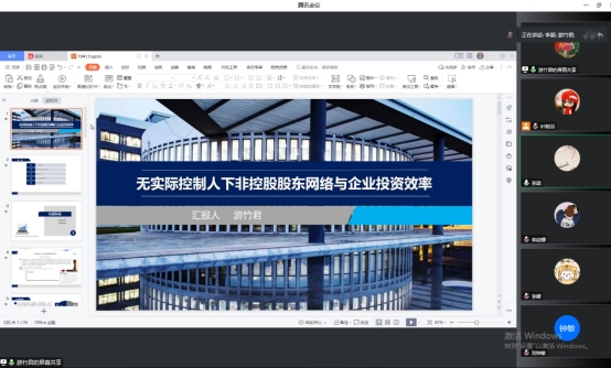 在王瑶老师汇报会,王东升老师、贺亚楠老师、王晓亮老师等其他参会老师进行了热烈讨论,就论文选题的现实意义、理论分析、变量衡量方式、政策建议等提出了各自的看法与建议。(独播库