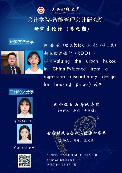 与智能管理会计研究院联合举办的研究生论坛第九期以线上会议的形式举行。参会人数超百人。