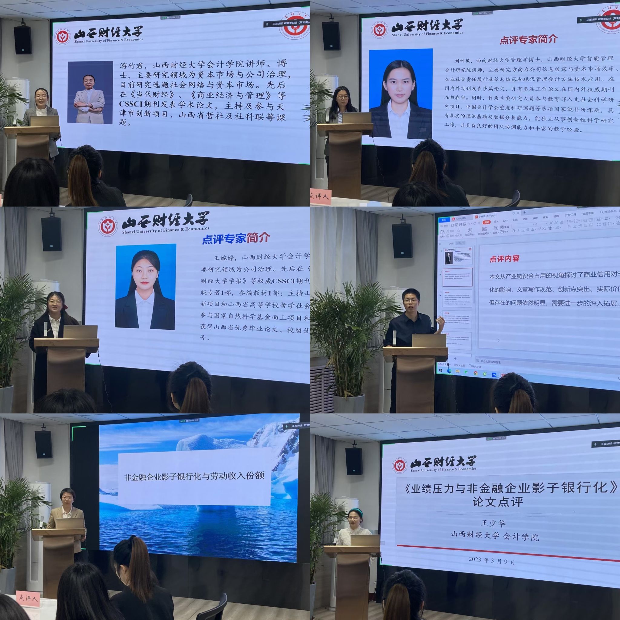 与智能管理会计研究院联合举办的研究生论坛(第十三期)以线下及线上两种形式同步举行。本次学术论坛的主题为“非金融企业影子银行化”。本期论坛的轮值主持人为黄贤环副教授。