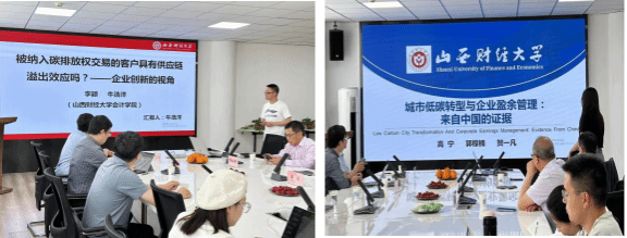 硕士研究生贺一凡汇报工作论文,题目为《城市低碳转型与企业盈余管理:来自中国的证据》。任志元老师针对文章的研究动机提出问题并建议增加长期影响因素。
