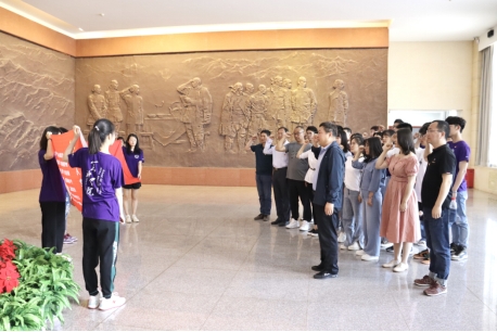 党委书记任海生带领师生党员面向党旗,重温入党誓词,在铿锵有力的誓词中,同志们领悟到了早期共产党人的首创精神、奋斗精神和奉献精神,进一步坚定了共产党人的初心和使命。全师生在广场纪念碑前共同朗诵了原创党史纪念颂《纪念刘胡兰》,追忆了她英勇抗敌的卓越功勋,表达了独播库