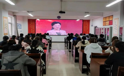 团委在学院会议室组织学生代表集中收看“学习宣传贯彻党的二十大精神,青春为祖国挺膺共担当”主题思政大课。网上思政大课由中央网信办网络传播局、教育部思想政治工作司指导,中国宋庆龄基金会、人民网、人民日报全国党媒信息公共平台共同主办。